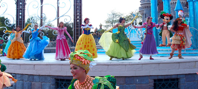 Katsoimme paraatin tänäänkin kaksi kertaa, kun eilen keksimme miten se helposti onnistui. En kuvannut lainkaan Fantasylandin puolella vaan jammailin vain musiikin mukana ja vilkuttelin hahmoille. Main Streetin päässä tuli sitten taas napattua kamera esiin ja räpsittyä muutama kuva muistoksi.